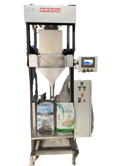 It is a semi-automatic filling machine designed for filling fertilizer and varieties of legumes products.