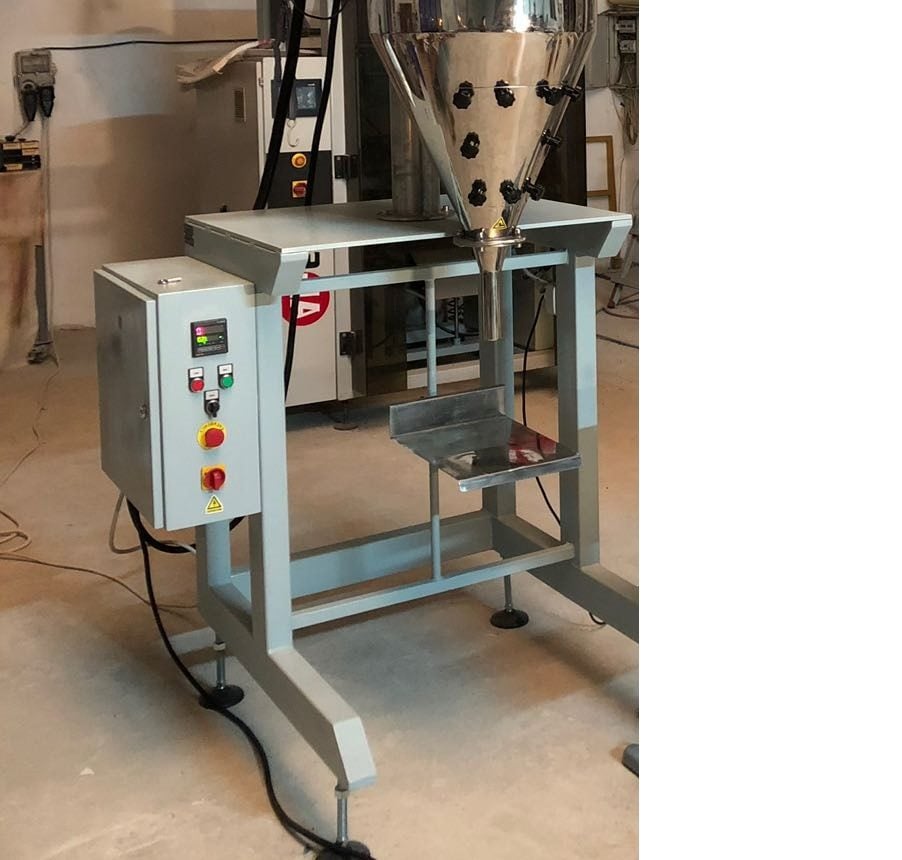 It carries out fully automatic packaging of granular or crystallized powdered products with free flowing properties. The system runs through the vibrator ducts of the product